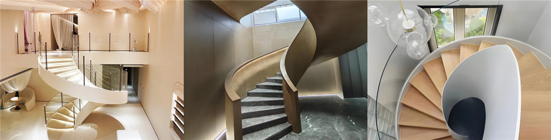 旋转弧度、踏步高度(建议15-18cm)、踏步宽度(有效深度≥22cm)需符合人体工学,并兼顾美观性。