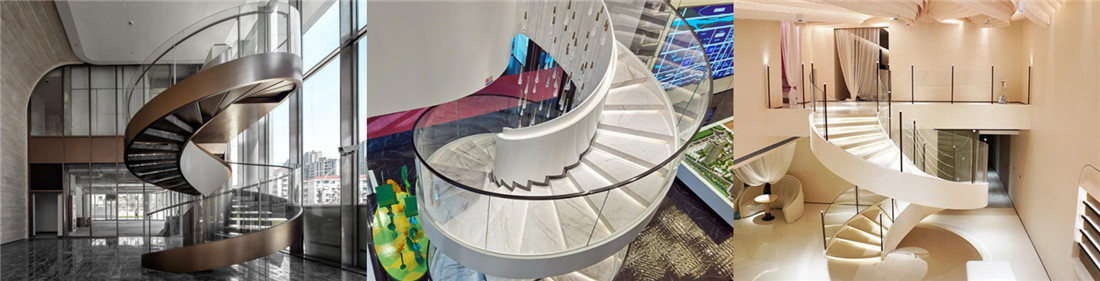 - 创意工作室/设计公司:简约铁艺旋梯搭配玻璃护栏,适配工业风办公环境,传递随性、创新的工作氛围,同时满足员工上下楼需求。